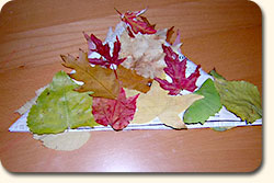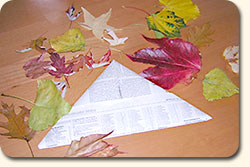 Mit den gesammelten Blättern kann man zum Beispiel einen Hut bekleben.