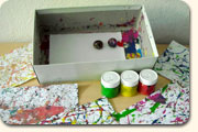 Damit kann Ihr Kind heute ein tolles Bild selbst gestalten. Es fehlen nun nur noch zwei-drei Murmeln oder andere fast runde Gegenstände (Kastanien eignen sich z.B. auch), Papier und etwas Farbe. Jetzt geht es los.