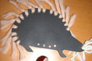 Einen Igel zur Dekoration kannst du leicht aus einem Stück dunkler Pappe zaubern. Einfach die Form eines Igels aufmalen und ausschneiden. Dann bekommt er auf den Rücken und den Bauch Löcher mit einem Locher gestanzt, in die du Wolle knoten kannst. Jetzt noch ein Gesichtchen aufmalen und den Bauch mit Wolle bekleben.