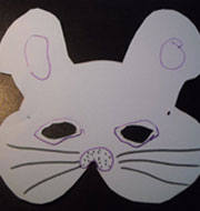 Zeichne auf buntem, etwas festerem Papier oder Moosgummi Tierköpfe auf, wie sie euch in den Sinn kommen - einen Hasen, eine Maus, eine Katze oder anderes Getier. Wichtig sind nur zwei Löcher für die Augen und ein Einschnitt für die Nase.