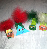 Schneide schmale Streifen und knicke das Papier dann wie eine Ziehharmonika. Nun wird aus andersfarbigem Papier der Kopf ausgeschnitten (Kreis, Dreieck oder nach Lust und Laune anders), mit Augen, Nase und Mund bemalt und auf den Körper geklebt. Niedlich sind auch aufgeklebte Wackelaugen. Schön sind bunte Federn als Schmuck auf dem Rücken des Wurms; bunte Wollreste oder Papierschnipsel geben eine andere Gattung ab.