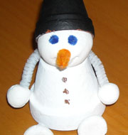 Die zwei Blumentöpfe werden weiß bzw. der kleinere schwarz angemalt. Stelle sie in die Nähe der Heizung, dann trocknet die Farbe schneller. In der Zwischenzeit kannst du aus der Modelliermasse eine Kugel für den Schneemannkopf sowie vier Kügelchen für Hände und Füße formen. Das können selbst die kleinsten Künstler. Jetzt wird in die noch feuchte Masse ein Stückchen Pfeifenputzerdraht als Verbindung zwischen den „Händen“ und den „Füßen“ gesteckt und der Schneemann bekommt seine Nase und zwei Augen. Den Mund können Sie später aufkleben oder aufmalen. Nun müssen alle Teile trocknen und aushärten. Dann kann alles zusammengeklebt werden. Vielleicht möchtet ihr eine ganze Schneemann-Familie basteln? Die schmelzen wenigstens nicht weg, wenn die Temperaturen wieder steigen.