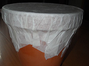 Bastele dir doch einfach eine Trommel selber und führe einen Regen-Weg-Tanz auf. Dazu benötigst du einen ruhig größeren Ton-Blumentopf, Tapetenkleister mit Zellulose und Butterbrotpapier von der Rolle. Nun wird der Topf am oberen Rand und außen mit dem angerührten Kleister angeschmiert und das erste Papier wird vorsichtig angedrückt – hilf deinem Kind, es anzudrücken und glatt zu streichen. Nun wird auch das Papier mit eingekleistert (geht gut mit einem dicken Pinsel oder den Händen) und die nächste Schicht Papier wird aufgelegt. Nun muss die Trommel trocknen. Danach kann sie noch mit schönen Farben bemalt werden und los geht der Trommel-Tanz.