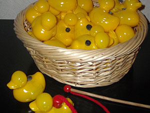 Achte beim den nächsten Einkäufen mal darauf, ob du preiswert ein paar Plastik-Enten erwerben kannst. Dann benötigst du noch entsprechend viele kleine Magnete aus dem Baumarkt oder Bastelgeschäft und schon kann geangelt werden.