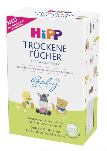 - Testinhalt: 20 Hebammen haben die HiPP Babysanft Trockene Tücher ultra sensitiv 4 Wochen lang getestet. Sie stellten das Produkt mit ihren Familien auf den Prüfstand. Insgesamt waren 108 Familien an dem Test beteiligt. Sie testeten die HiPP Babysanft Trockene Tücher ultra sensitiv im Alltag mit ihrem Baby im Hinblick auf Produktmerkmale wie die allgemeine Qualität, die Sanftheit der Tücher, die Sauberkeit nach der Pflege oder die Wertigkeit der Verpackung.
