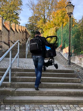 Tina aus Berlin: „Während der Testphase haben wir ausschließlich den Metro Compact City Stroller – Newborn Kit verwendet. Heute haben wir den alten Kinderwagen zum Vergleich wieder verwendet. Der 'alte' Kinderwagen ist deutlich schwerer für mich. Auch total unpraktisch für lange Spaziergänge. Am besten hat uns gefallen, dass der Kinderwagen so leicht ist und dass die Babywanne schön schaukelt, sodass der Kleine relativ schnell einschläft. Wenn wir in der Stadt unterwegs sind brauchen wir oft nicht auf den Aufzug zu warten, da mein Mann den Kinderwagen mit Baby bei Treppen tragen kann. Durch seine Größe fällt der Kinderwagen oft negativ auf, was ich aber persönlich sehr praktisch finde und dafür braucht der Kinderwagen mehr Imagewerbung.“