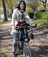 Elfi aus Berlin: "Ich finde es toll, dass es einen Sitz gibt, der vorne passt. Es macht einfach mehr Spaß, die Kinder vorne zu haben. Auch ist das Gewicht sehr viel besser verteilt, als bei einem Heck-Sitz."