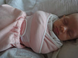 Katharina aus Düsseldorf: "Mit dem Puck-Mich-Sack schläft meine Tochter bedeutend ruhiger und ich werde ihn auf jeden Fall weiter nutzen, solange er passt. Der Puck-Mich-Sack lässt sich mit ein bisschen Übung leicht anlegen und die Klettverschlüsse halten sehr gut."