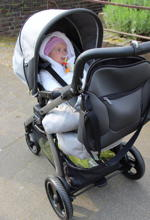Christina aus Köln ist begeistert: „Es ist ein top Kinderwagen, tolles Design, super Fahrverhalten, leichtes Gestell, er lässt sich blitzschnell aufbauen und zusammenfalten. Ein Traum.“ Valeska aus Frankfurt berichtet: „Der Kinderwagen, der Autositz und die Wickeltasche waren mit im Spanien-Urlaub. Vor allem das ausklappbare Verdeck, das leichte Auseinandernehmen des Wagens und dass man den Sitz ganz einfach umdrehen kann, haben sich bewährt. Auch in Taxis und Kleinwagen haben wir alles problemlos rein bekommen. Wirklich super.“