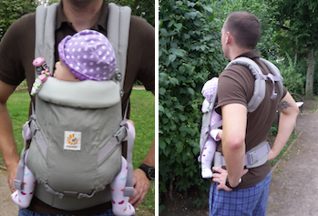 Silke aus Wiesbaden schreibt uns: "Mein Mann kommt mit der Trage besser zurecht als mit einem Tragetuch. Unser Sohn lässt sich gerne in der Komforttrage tragen und schläft auch gut darin ein. Besonders praktisch ist sie für unterwegs. Ich kann sie alleine anziehen, das war mir besonders wichtig."