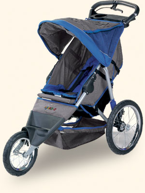 Hinterräder schnell an- und abzumontieren. Einfach zusammenklappbar (ca. L 77 x B 47 x H 78 cm, ohne Hinterräder). Gesamt: ca. L 115 x B 59 x H 102 cm. Gewicht: 12 kg. Ab 8 Monaten.