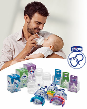Die Natur hat jede Mutter mit dem Wichtigsten ausgestattet, was sie braucht, um ihr Baby ideal zu ernähren - die Muttermilch. Da jedoch vermehrt auch die frischgebackenen Väter diesen innigen Moment mit Ihrem Baby erfahren und erleben möchten, hat Chicco eine Fläschchenlinie entwickelt, die die mütterlichen Gegebenheiten nachempfindet. Die Chicco STEP UP Fläschchen wurden mit „mitwachsenden“ Saugern ausgestattet, deren Form sich den Bedürfnissen und der sich entwickelnden Trinkfähigkeit des Babys anpasst – vom ersten „Ausdrücken“ der Brustwarze bis hin zum richtigen Saugen.