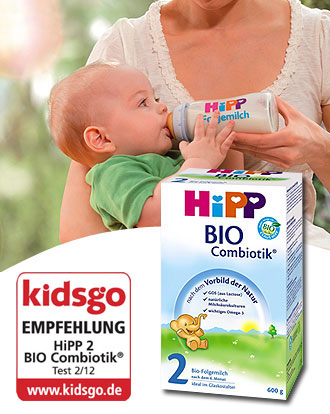 „Alles perfekt - wir freuen uns HiPP 2 Bio Combiotik weiter zu verwenden!“ schreibt Diana. „Mein Sohn war etwas wählerisch nach dem Abstillen“, schildert Tina aus Neunkirchen ihre Erfahrungen, „jetzt haben wir das richtige Produkt gefunden“. Julia aus Erkrath bringt es auf den Punkt: „HiPP 2 Bio Combiotik mit den wichtigen Ballaststoffen, den natürlichen Milchsäurekulturen und Omega-3 Fettsäuren war mir ein würdiger Ersatz für die Muttermilch“. Für dieses überzeugende Ergebnis verleiht kidsgo der HiPP 2 Bio Combiotik Folgemilch das Siegel „kidsgo-Empfehlung“.