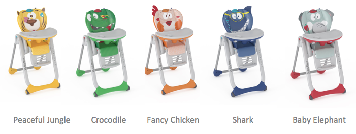 Sein abwaschbares Polster gibt es in fünf lustigen Tiermotiven wie beispielsweise „Shark“, „Fancy Chicken“ oder „Crocodile“. Wer es schlichter mag, hat die Wahl zwischen den Farben Caramel, Glacial und Happy silver.