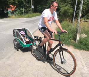 Kathrin aus Hamburg: „Egal ob im Gelände oder im täglichen Gebrauch, der Anhänger ist durch seine Wendigkeit und die tolle Federung wirklich eine Bereicherung. Bordsteine können entspannt genommen werden ohne dass der Fahrgast zu doll durchgeschüttelt wird. Wir waren sehr erstaunt wie leichtläufig und wendig der Anhänger ist. Unsere Tochter hat mit ihren diversen Kuscheltieren viel Platz im Anhänger. Auch beim Einkaufen habe ich probiert, ob ich durch die Gänge passe und was alles in den Stauraum passt. Der Anhänger ist wirklich ein kleines Raumwunder.“