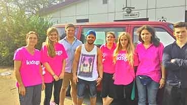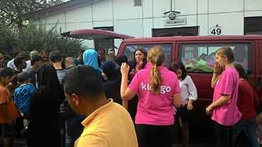 12. August 2015: Geschenkeverteilung in der Menge direkt aus dem Bus